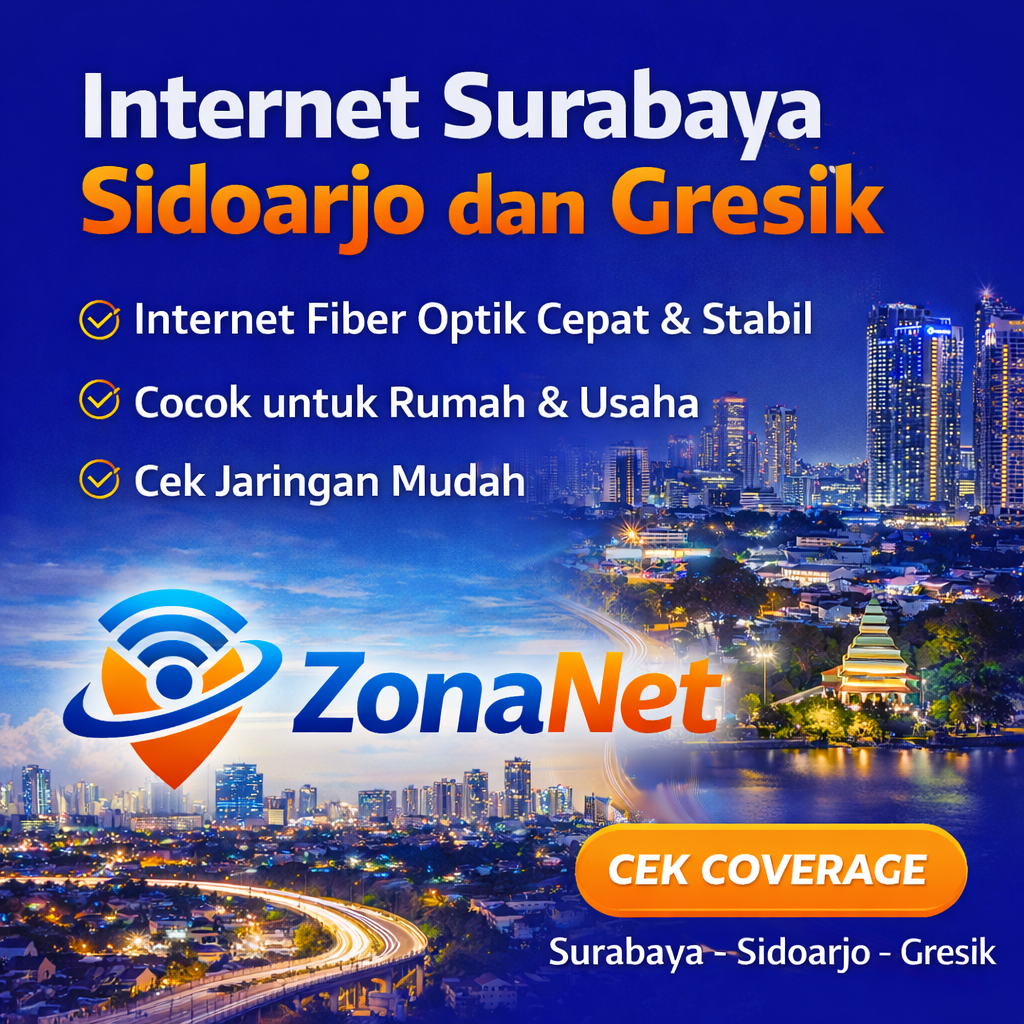 Nikmati pengalaman internet cepat, stabil, dan nyaman untuk seluruh aktivitas digital Anda. ZonaNet hadir membantu masyarakat Surabaya, Sidoarjo, dan Gresik mendapatkan koneksi internet yang sesuai kebutuhan rumah maupun usaha dengan proses mudah dan layanan profesional.